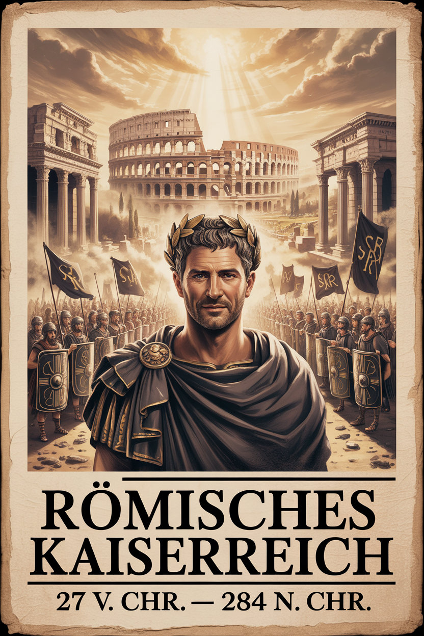 Nach den Bürgerkriegen übernahm Augustus die Kontrolle über den Staat. Der Senat verlieh ihm besondere Vollmachten und den Ehrentitel „Augustus“. Obwohl die Republik formal bestehen blieb, konzentrierte sich die Macht nun in seinen Händen. Augustus reformierte Verwaltung, Militär und Finanzen. Seine Herrschaft brachte Stabilität nach Jahrzehnten politischer Unruhen.