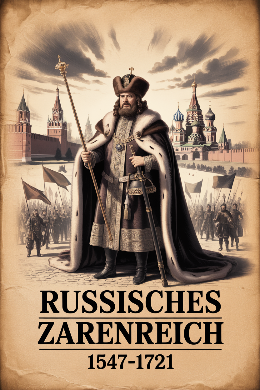 Iwan IV. war der erste Herrscher, der sich offiziell „Zar von Russland“ nannte. Er stärkte die Zentralgewalt und schuf neue Verwaltungs- und Militärstrukturen. Außenpolitisch eroberte er die Khanate Kasan und Astrachan und öffnete den Weg nach Sibirien. Innenpolitisch führte er jedoch die Opritschnina ein, eine Terrorherrschaft gegen den Adel. Tausende Menschen wurden verfolgt oder getötet. Seine Herrschaft war daher von Expansion und Grausamkeit zugleich geprägt. Nach seinem Tod folgte eine Phase politischer Instabilität.